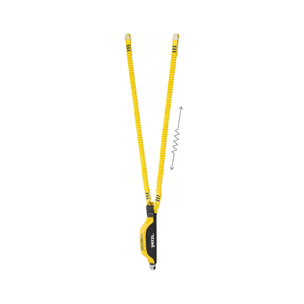 ABSORBICA Y di Petzl è un cordino anticaduta doppio con assorbitore di energia integrato.