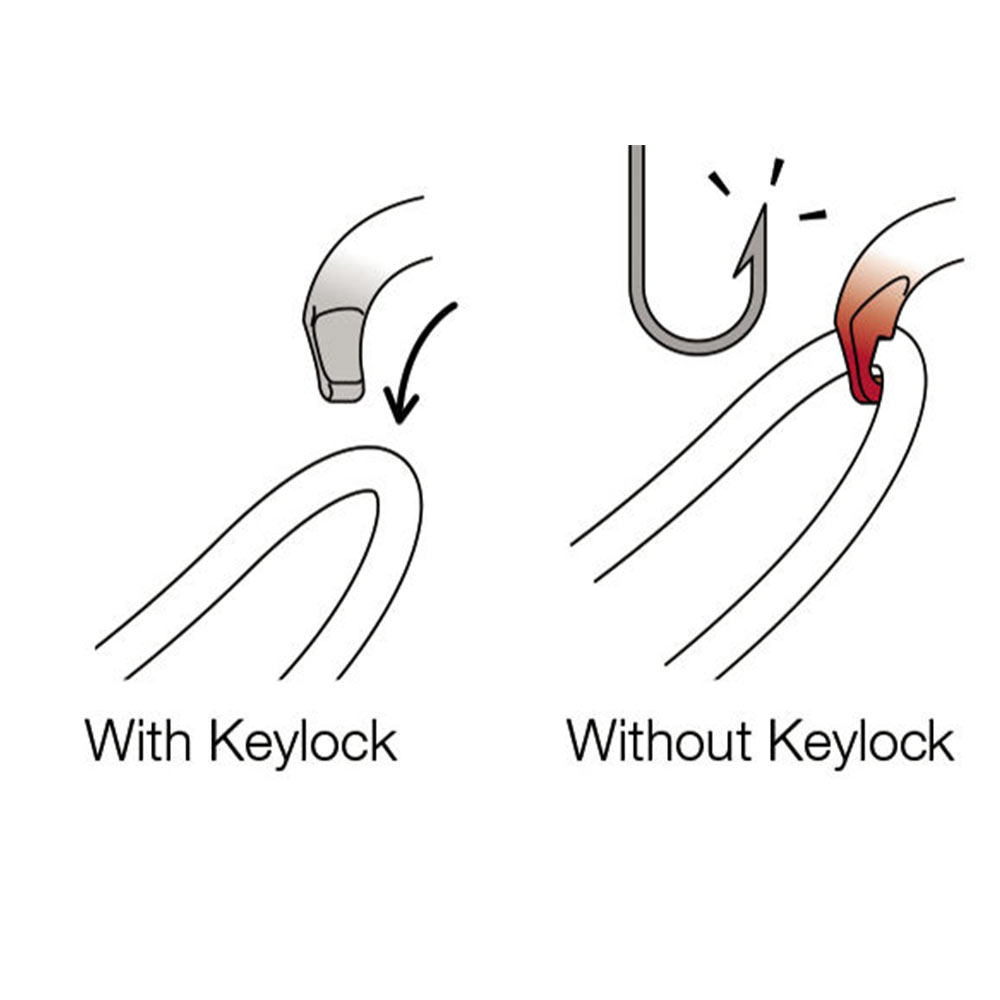 Tutti i moschettoni di Petzl sono dotati di sistema Keylock che grazie all’interfaccia sprovvista del gancio, evita l’impigliamento involontario del moschettone con gli altri dispositivi anticaduta o gli accessori.